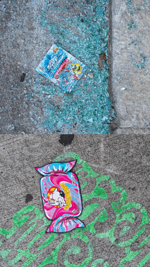 This collection reach over 450 discarded bags of cannabis. All of them have been picked by hands on the streets of Brooklyn, cleaned and dried carefully so that they can keep their freshness and their design shiny.
